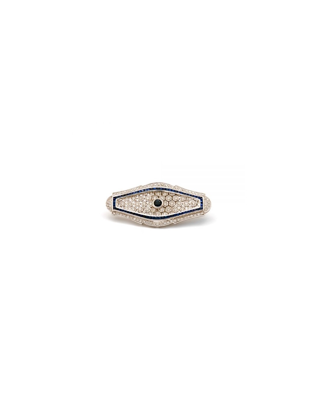 Broche oro blanco de1ª ley estilo Art Decó con zafiros y brillantes (VS-GH, talla y proporciones: muy buena).