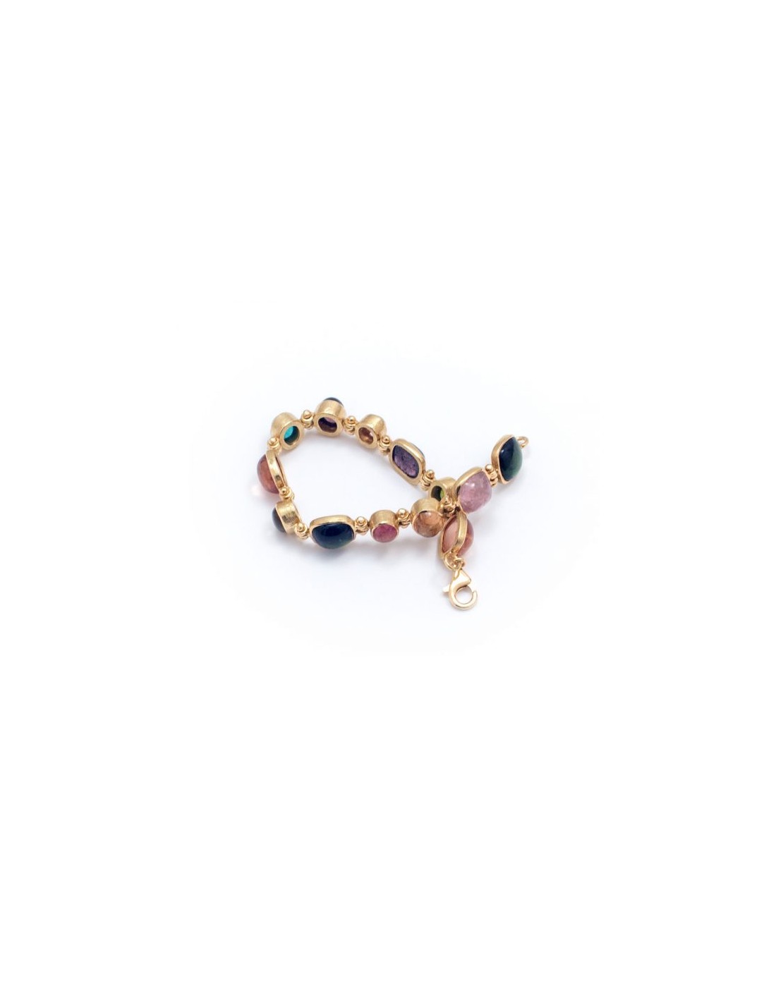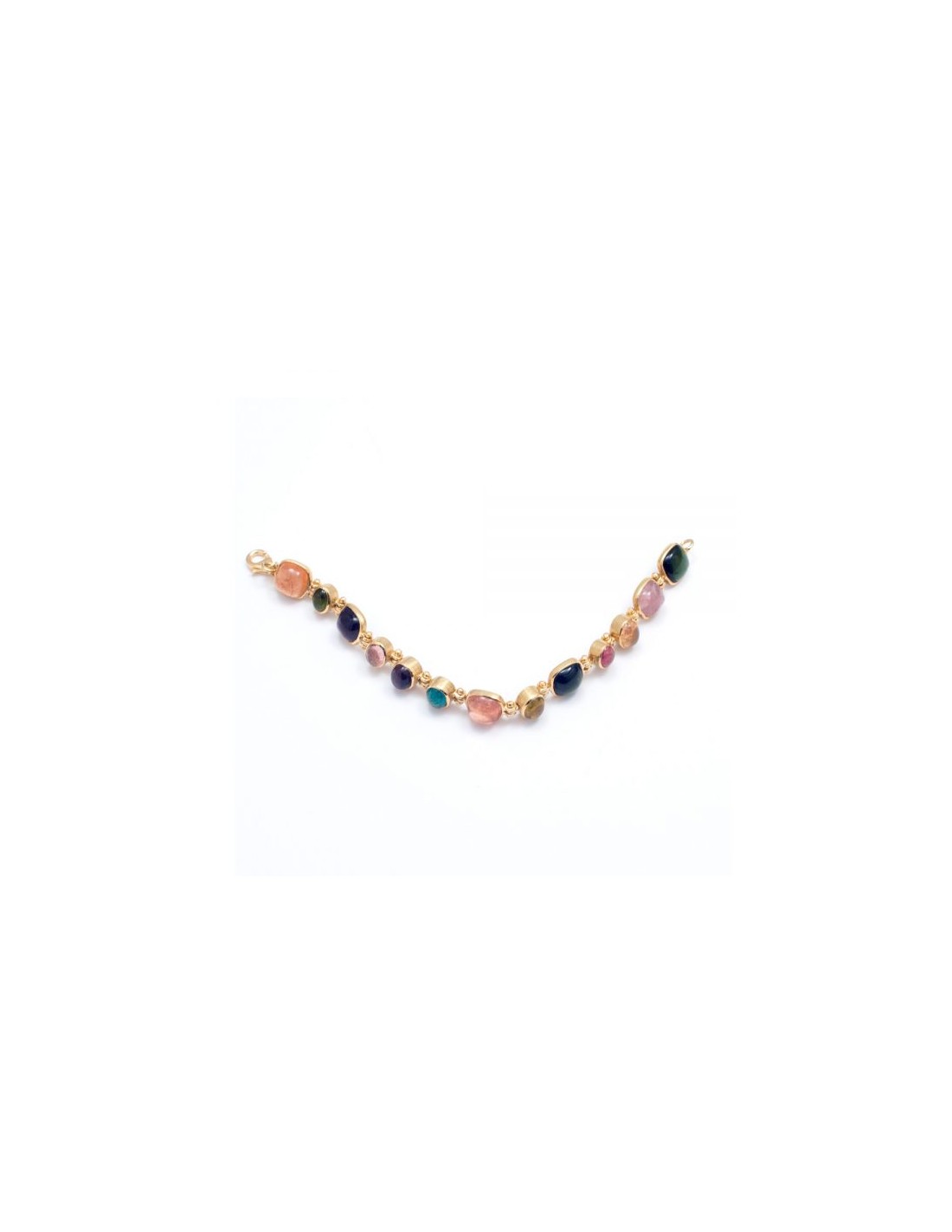 Pulsera en oro amarillo con turmalinas de diferentes colores naturales en cabujón.