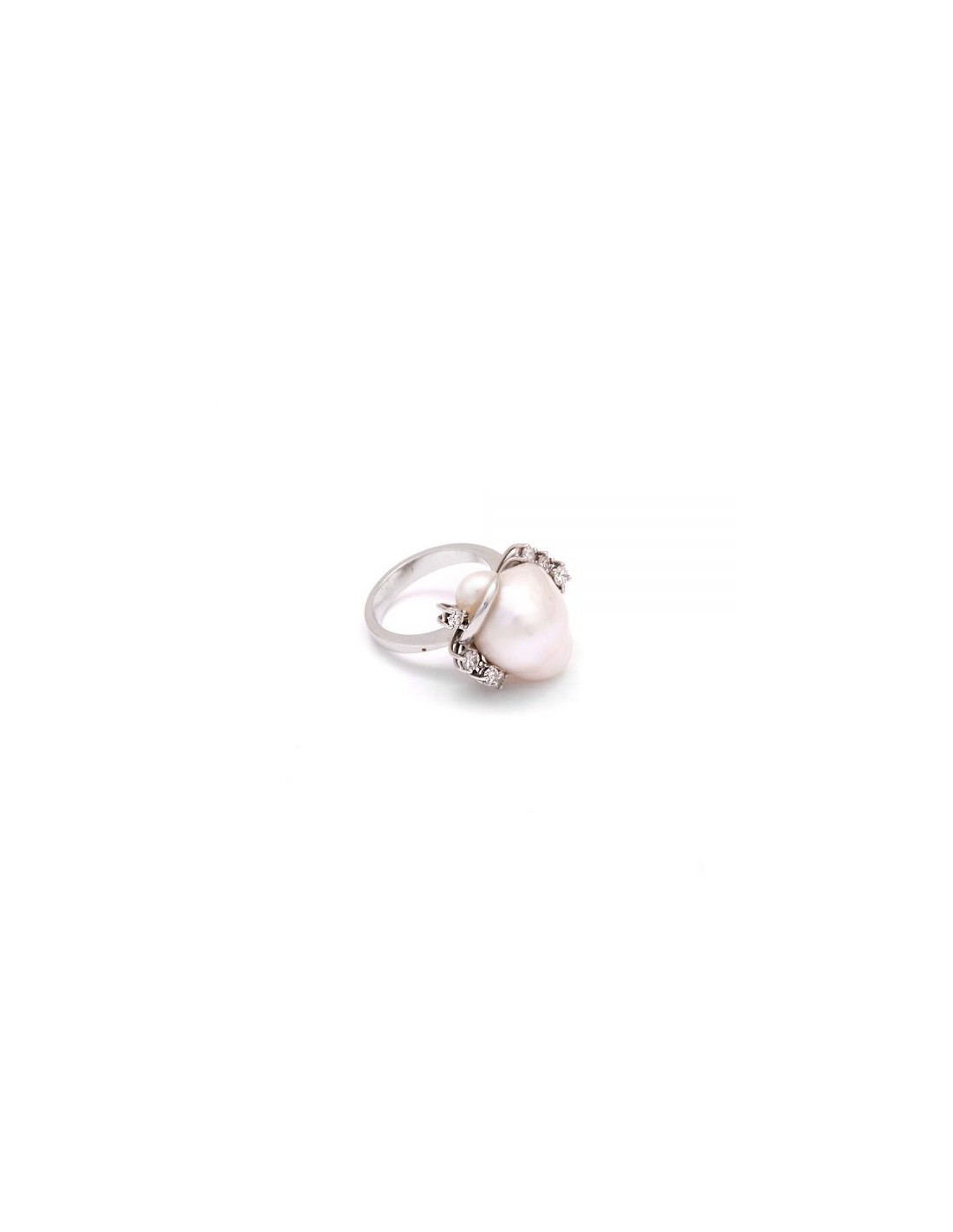Sortija oro blanco 1ª ley con perla australiana barroca y ocho brillantes (VS-GH, talla y proporciones: muy buena) engastados con garras a los laterales.